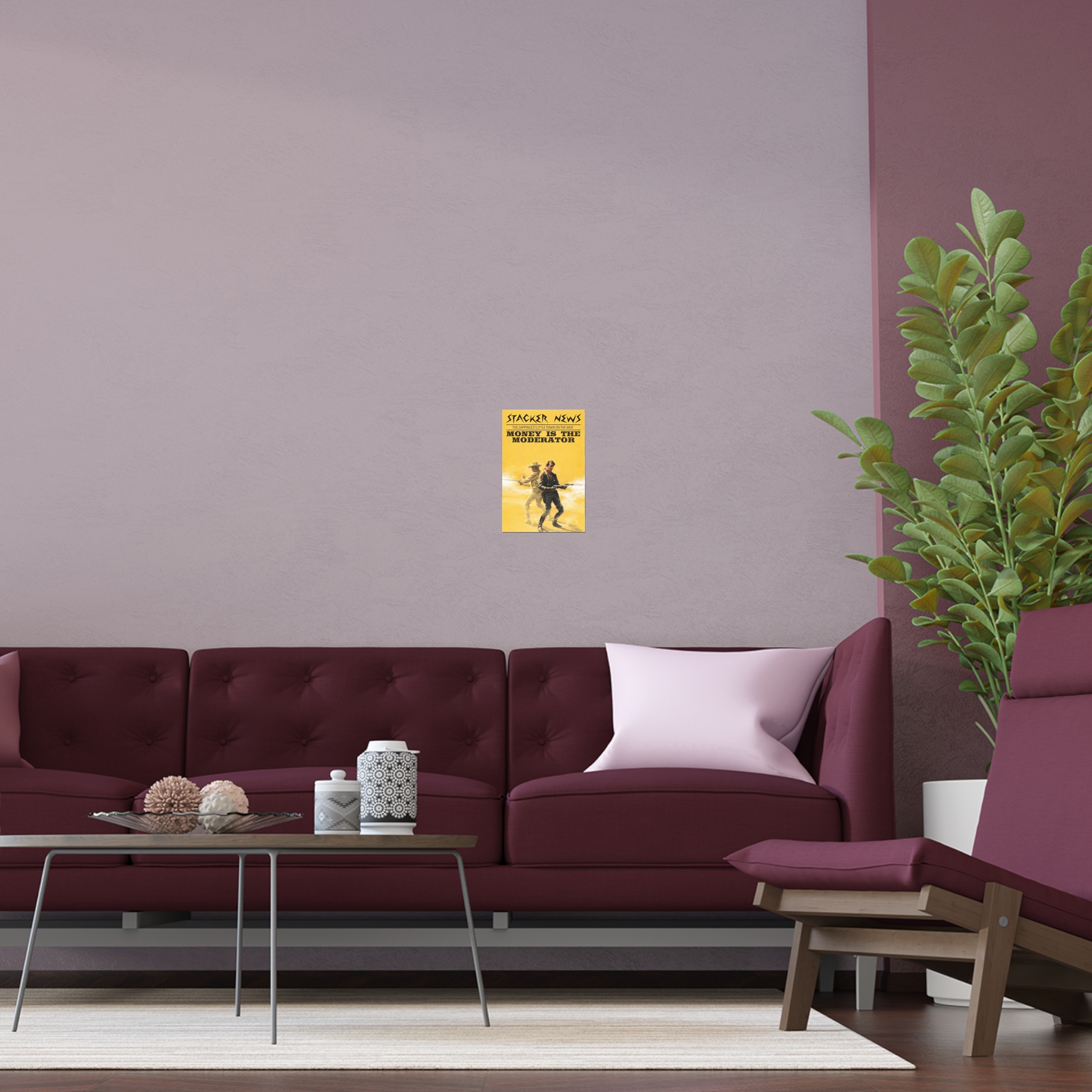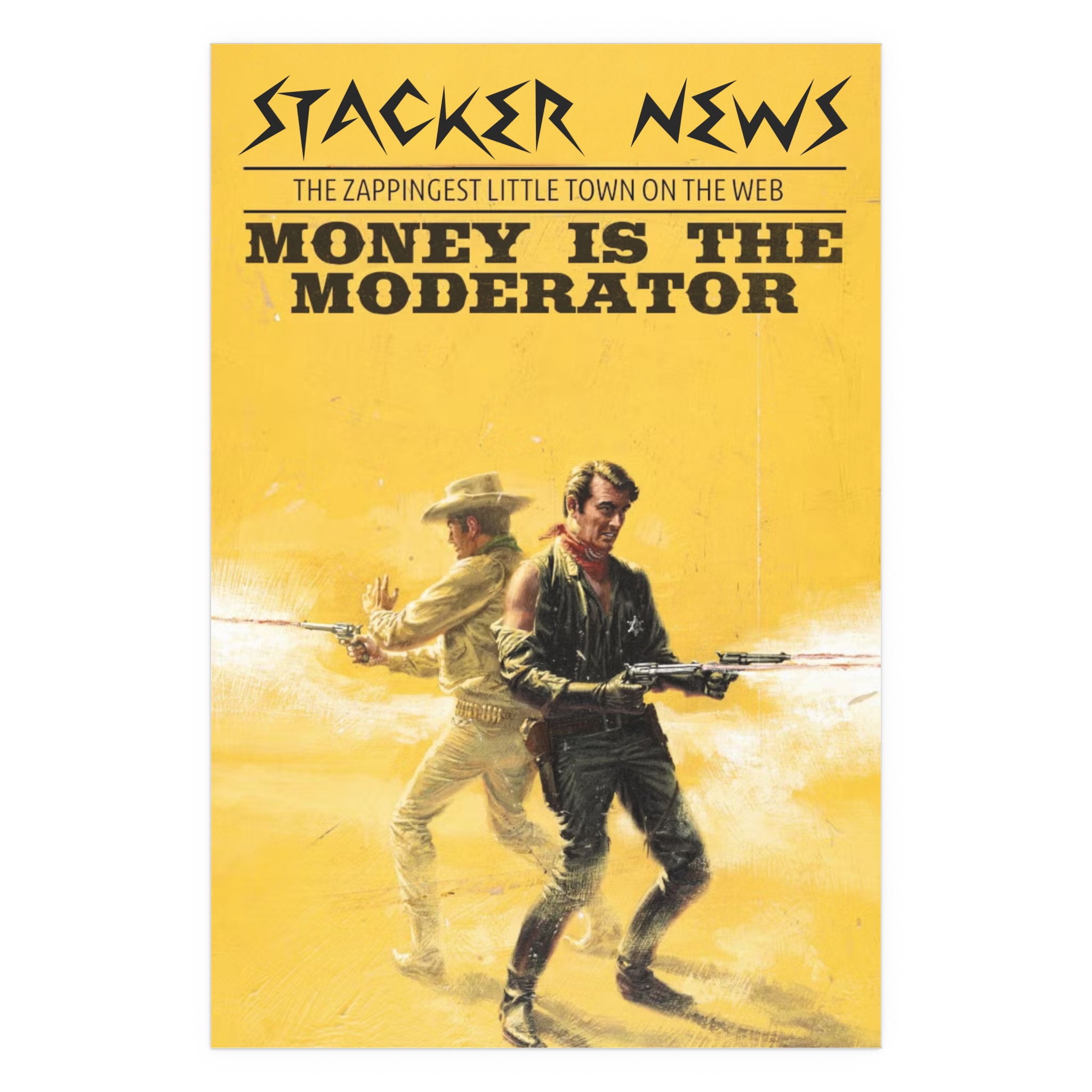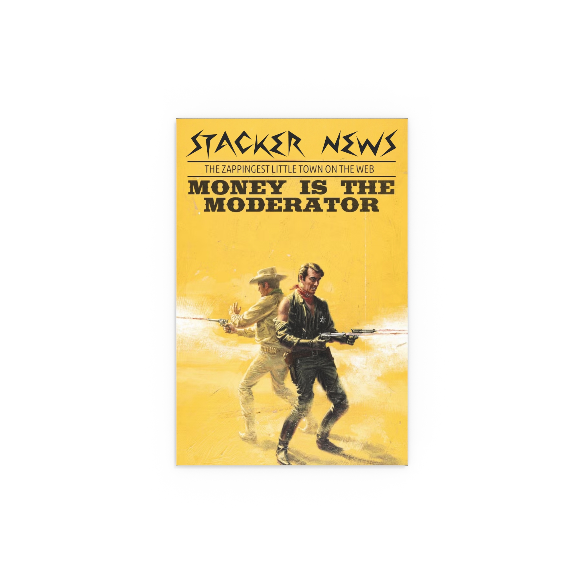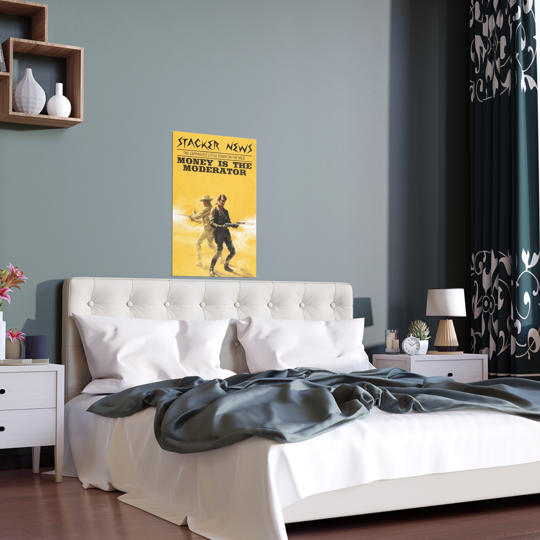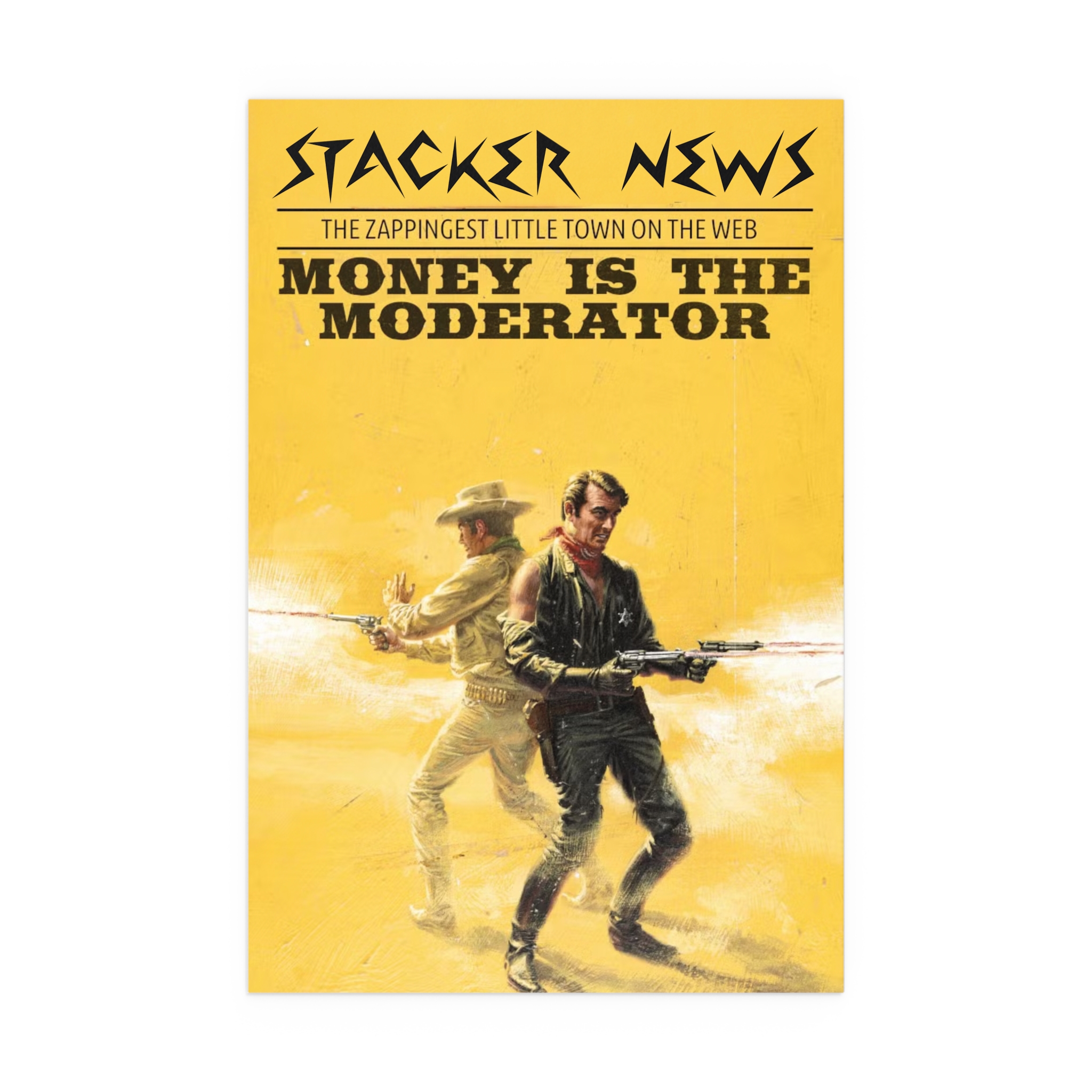 Channel the grit and energy of a vintage western screen with this silk-finish poster from the “The Money is the Moderator” series. Each print feels like a relic from a long-ago theater marquee, reimagined as a STACKER.NEWS advertisement—bold headlines, saturated hues, and that slightly rebellious, cinematic vibes.