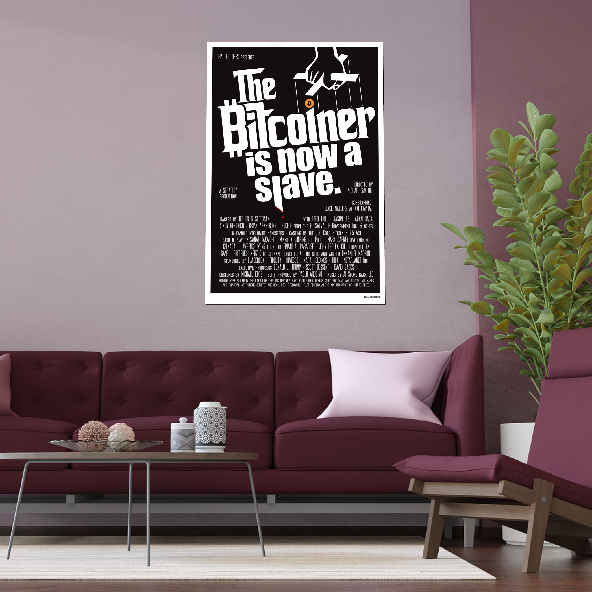Behold the finest way to turn one of yer Classic Movie Poster into a masterpiece for yer walls with this water and scratch-resistant Bitcoin vertical posters! The design reads like a shocking film credit roll — names, institutions, and conspiratorial whispers stacked together with dark humor and world-weary irony. It feels like the after‑party of a financial thriller: tense, absurd, and impossible to look away from. Crafted with top-grade 200 gsm paper and is printed using high-quality UV inks, this ain’t no ordinary poster, it’s a gateway to real-life beauty enhancing Stackers, Cowboys, and Contributors of STACKER NEWS. Each poster is printed with top-tier pigmented archival inks, guaranteed to bring yer art to life in all its splendor. Proudly made in the USA, with print providers in EU and Asia, these posters are a true testament to craftsmanship that will make yer walls sing! Yeehaw!
